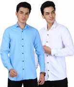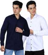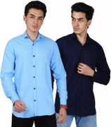 Men Regular Fit Solid Spread Collar Casual Shirt (Pack of 2)