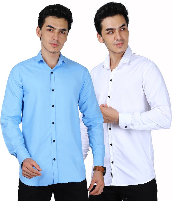 NARGHEISH NICE Men Solid Casual Light Blue, White Shirt (Pack of 2)