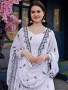 White Mulmul Faux Embroidered Anarkali Gown Set With Dupatta