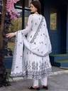White Mulmul Faux Embroidered Anarkali Gown Set With Dupatta