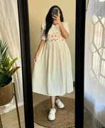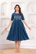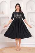 Bring elegance and ease to your wardrobe with the Nariglam Women’s Fit and Flare Dress, made from soft and breathable viscose rayon fabric. This stylish below-knee dress features a fit and flare silhouette that beautifully enhances your waistline and offers a graceful, flowing finish — perfect for both casual and semi-formal occasions.Designed to suit Indian body types, this dress combines ethnic charm with a modern twist, making it ideal for daily wear, office outings, family gatherings, or festive celebrations. Its lightweight fabric ensures comfort all day long, while the stylish cut ensures you look effortlessly put-together.Pair it with sandals for a relaxed daytime look or heels and jewelry for a chic evening ensemble. Whether you're a college-goer, working professional, or homemaker, this versatile dress is a must-have in your collection.