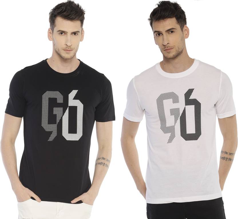 Narkos Pack of 2 Men Printed Round Neck Pure Cotton White, Black T-Shirt