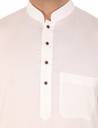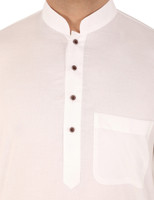 The kurta is designed with a mandarin collar and gives its classic form some modern appeal. The mandarin collar enhances the kurta's whole appearance by offering a snug fit free from restriction. This collar type is a sensible option for many parties since it is not only trendy but also comfortable. The mandarin collar emphasises the solid design, therefore producing a balanced and fashionable look.