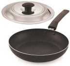 NARV Non Stick Fry Pan Dishwasher Safe, Tawa with Steel Lid, Spatula & Scrubber K1 Non-Stick Coated Cookware Set (Aluminium, 1 - Piece)