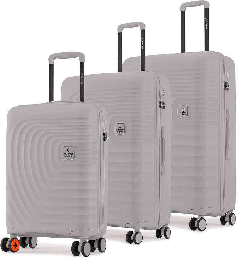Boston Hard-Sided Polypropylene Luggage Set of 3 Grey Trolley Bag(55, 65 & 75cm)