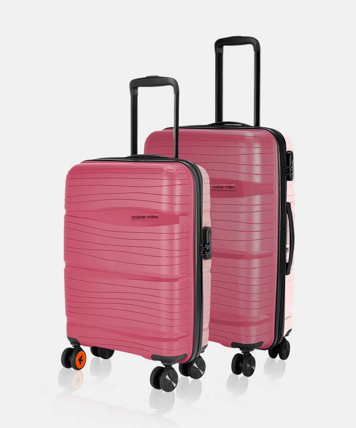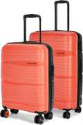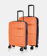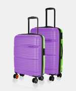 Dual coloured hard sided luggage - ideal for trips of any duration. Set includes the following sizes: and Small 55 cm & Medium 65 cm with the front and back in attractive complementing colours.Outer Material of luggage is made from Polypropylene that keeps it lightweight, and enhances the resilience and durability.Iron Telescopic handle for comfortable manoeuvring. 8 silent spinner wheels with 360 degrees rotation for effortless mobility. Number lock included.Spacious main compartment, lined interior, down straps, zippered divider(large and medium) and 2 mesh pockets . A top and side carry handle for lifting , in the medium sized bags. The small bag only has a top carry handle. Warranty: 3 Years warranty on shell & 1 year warranty on accessories. Wear & Tear for product under use and scratches are not covered.