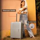 Compression Straps, 360 Degree Wheels, Telescopic Retractable Handle, Fixed Combination Number Lock, Scratch Resistant, Inner Mesh Utility Pocket
