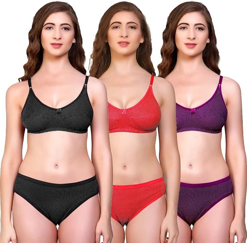 Bra & Panty Set Printed Red, Blue, Black Lingerie Set