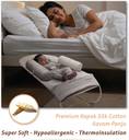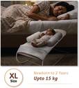 The Nasobuddy Sleep Helper Baby Bed offers parents a practical solution for their baby's sleep challenges, providing a womb-like, comforting environment.This ergonomically designed responsive baby bed mimics the gentle motion babies experienced in the womb, helping them drift into peaceful sleep without the need for constant rocking from parents. The Nasobuddy Sleep Helper features a unique ergonomic steel frame that creates a responsive, gentle bounce, activated by a soft press or the baby's own movements. Safety is paramount; the bed is designed to be close to the ground with an inclination of less than 10 degrees, offering a more stable and secure alternative to traditional swings or bouncers. Made with the purest materials, the removable sleeve bed and supportive pillows are crafted from 100% pure, breathable cotton, with hypoallergenic Kapok Silk Cotton (Ilavam Panju) fillers for ultimate softness and comfort for delicate skin.