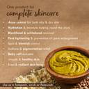3. ACNE CONTROL FOR BOTH OILY & DRY SKIN: Maintains pH & sebum balance in all skin types. Regulates oil secretion, pore enlargement & acne in oily skin while being a sebum activator for dry skin keeping dry acne & pimples away. Neem, wild turmeric & moong play a significant role in this.