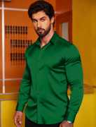 Men Regular Fit Solid Cut Away Collar Casual Shirt
