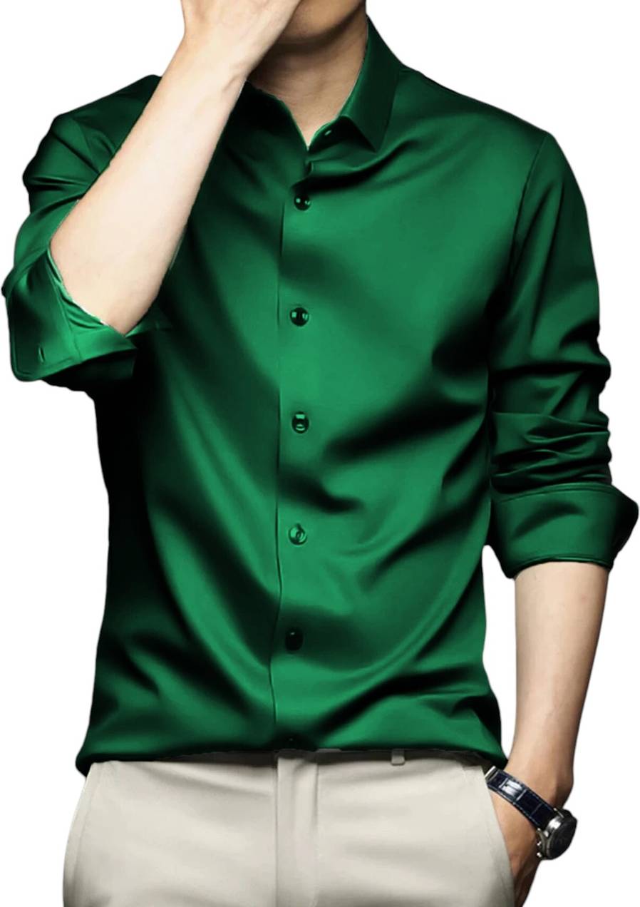 Nat Jastica Men Solid Party Green Shirt