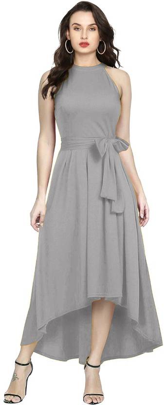 Solid Rayon Blend Stitched Anarkali Gown (Grey)