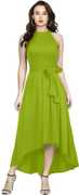 Western wear gowns Premium quality comfortable rayon fabrics High low style long dresses Style with waist belt Plain and solid design Sleeveless fashion Invisible zip back side Anarkali flared stylish gown Net content 1 readymade dress / gown
