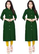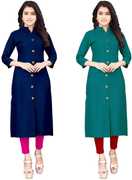 Combo Highslit Front-Slit Cotton Collared Mandarin Girls Top