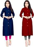 Combo High-Slit Front Slit Mandarian Long Calf Length Girls Top