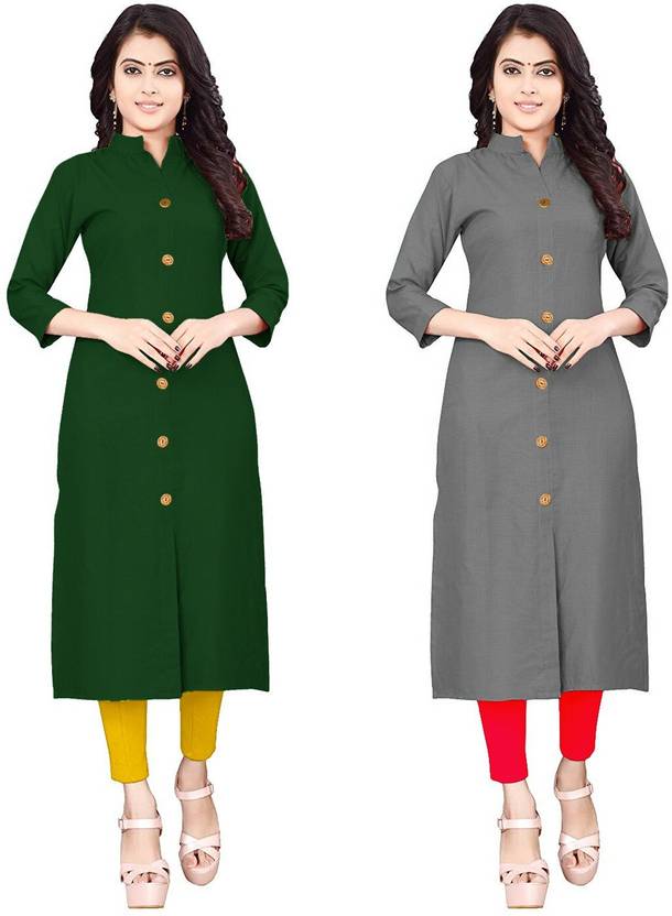Combo College Wear Regular Formal Button Combo Pack Of 2 Ladies Kurtis