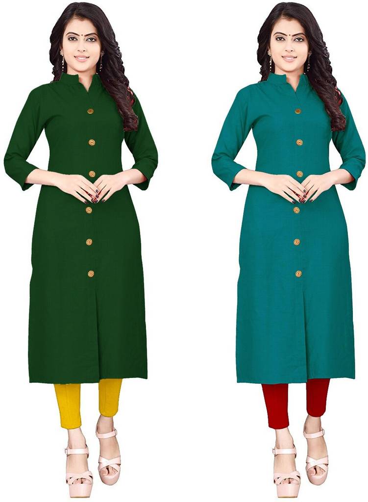 Combo Combo Pack Of 2 Wooden Buttons Designer Straight Comfortable Women Kurta