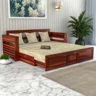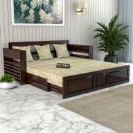 NATRAJ ART & CRAFT Sheesham Wooden 3 Seater Sofa Cums Bed for Living Room Bedroom Hotel 3 Seater Double Solid Wood Pull Out Sofa Cum Bed (Finish Color - Walnut Delivery Condition - Pre-assembled)