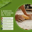 Natraj The Right Choice Soybean flour, also known as soy flour, is a versatile and nutritious ingredient made from finely ground soybeans. Rich in protein, fiber, and essential nutrients, it is a popular choice for adding a nutritional boost to various recipes. It comes in two main varieties: defatted, which has reduced fat content, and full-fat, which retains the natural oils from the soybeans. Soybean flour is commonly used in baking to enhance the protein content and texture of bread, muffins, and pancakes. It also serves as a thickening agent in soups and sauces and can be incorporated into smoothies and energy bars. Its mild, nutty flavor blends well with other ingredients, making it a valuable addition to both savory and sweet dishes. As a gluten-free alternative, it is especially useful in catering to those with gluten sensitivities or celiac disease.