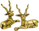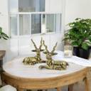 This brass deer figures epitomize the majestic unity and grace of nature as they sit together expressing elegance. The intricate artistry of their antlers, eyes, and fur brings a lifelike quality, showcasing the skill of the artisan. Adorned with a lavish golden finish, these figurines symbolize longevity, prosperity, and positive energy in Feng Shui teachings. Positioning them near your entrance is thought to draw in positive vibes and ward off negativity, offering a meaningful and delightful touch to your living space.