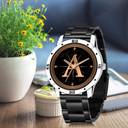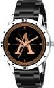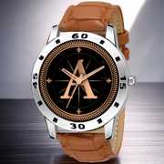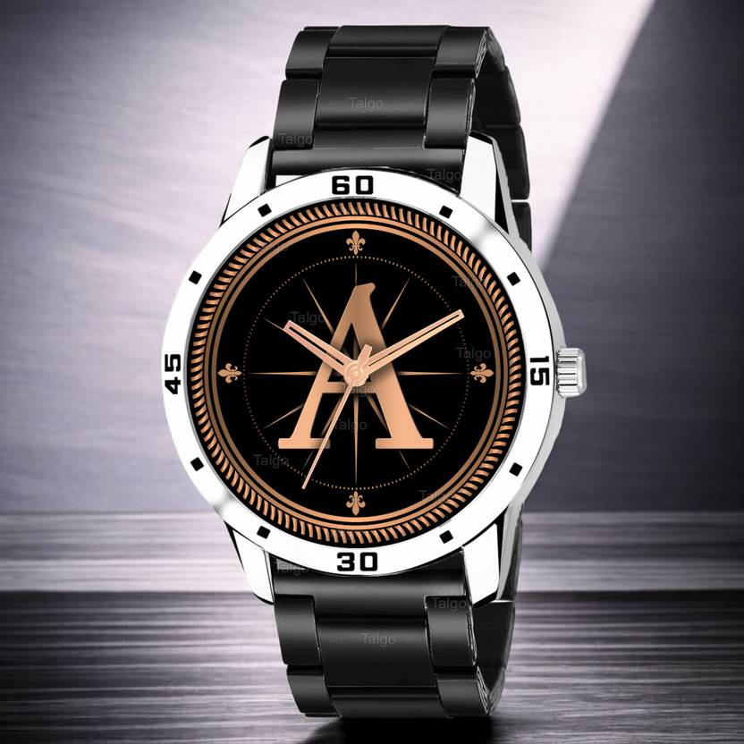 Fancy Design Stylish ALPHABET A Dial Black Leather Strap Men Wrist Watch