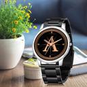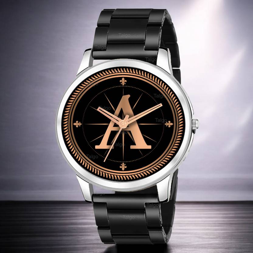 Fancy Design Stylish ALPHABET A Dial Black Leather Strap Men Wrist Watch