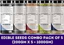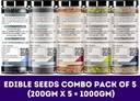 Natupure Raw Edible Seeds Value Combo Pack Basil Seeds, Chia Seeds, Brown Flax Seeds, Pumpkin Seeds, Sunflower Seeds