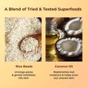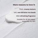 Composition | - Rice & Coconut Demineralized Water, Cetostearyl Alcohol, Palmitic acid, Glyceryl Monosterate, Stearic acid, Glycerin, Sunflower Oil, Propanediol, Rice Beads, C14-22 Alcohols (and) C12-20 Alkyl Glucoside, Caprylic/Capric Triglyceride, Propylene glycol, Methyl Gluceth-20, Coconut Oil, Shea Butter, Niacinamide, Phenoxyethanol, Polyacrylate Crosspolymer-6, Allantoin, Titanium Dioxide, Aluminium Hydroxide, Amorphous silica, Maltooligosyl Glucoside, Fragrance, Cocamidopropyl Betaine, Hydrogenated Starch Hydrolysate, Potassium Cocoyl Glycinate, Potassium Cocoate, Potassium Hydroxide, Disodium EDTA, Tocopheryl Acetate, Ethylhexylglycerin.