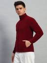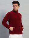Maroon Fleece Solid High Neck Full sleeve Sweatshirt For Men