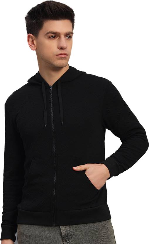 Black Fleece Solid High Neck Full sleeve Sweatshirt For Men