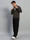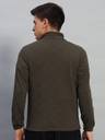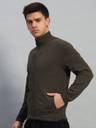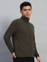 Olive Fleece Solid High Neck Full sleeve Sweatshirt For Men