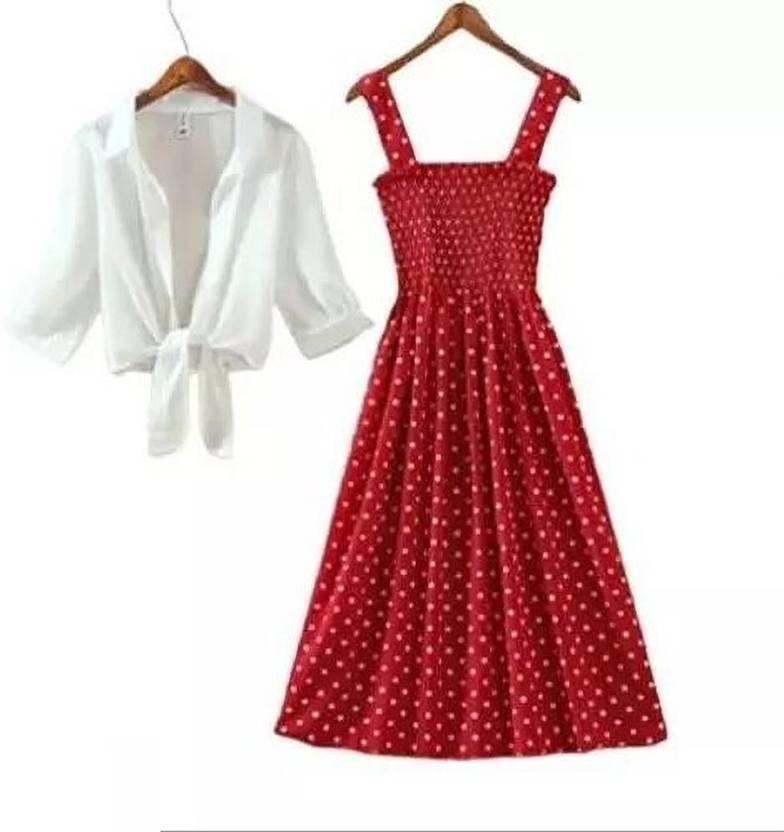 Western Casual Polka Dot Printed Polycrepe Knee Length Short One Strap