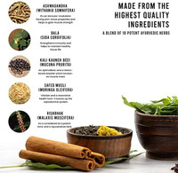 The capsule, which is made in compliance with traditional Ayurvedic principles, maximises the benefits of nature to support optimal health. A balanced and potent composition is ensured by the careful selection of each ingredient based on its medicinal qualities and synergistic effects, which ensures that you get comprehensive health advantages. The Ayurvedic formula provides the benefits of nature to improve your health by integrating ingredients like Ashwagandha, Bala, Kali Kaunch Beej, Safed Musli, and Rishbhak.