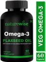 Naturewise Plant Based Omega 3 Flax Seed Oil Capsules- Best Source of Veg Omega (1000mg) (60 Capsules)