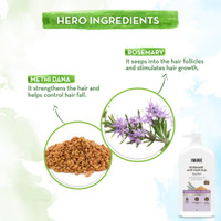 Thanks to its blend of rosemary and methi dana (fenugreek seeds), this shampoo works to improve both hair strength and growth. Rosemary is known for its ability to stimulate hair follicles, encouraging healthy hair growth while preventing thinning. Methi dana strengthens the hair from root to tip and helps control hair fall.