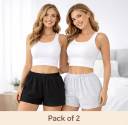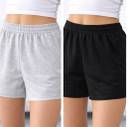 This pack includes two pairs of comfortable and casual shorts, one in black and one in light grey. Both shorts feature an elasticated waistband with an adjustable drawstring for a secure and comfortable fit, along with practical side pockets. Made from a soft, breathable fabric, these shorts are ideal for lounging at home, casual outings, or light activities. They offer a relaxed fit and a simple, versatile design that can be easily paired with various tops. Compatible products: Casual t-shirts, tank tops, crop tops, hoodies, sweatshirts, sneakers, flip-flops, and casual sandals.