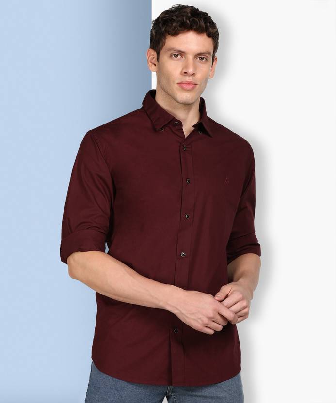 NAUTICA Men Solid Casual Maroon Shirt