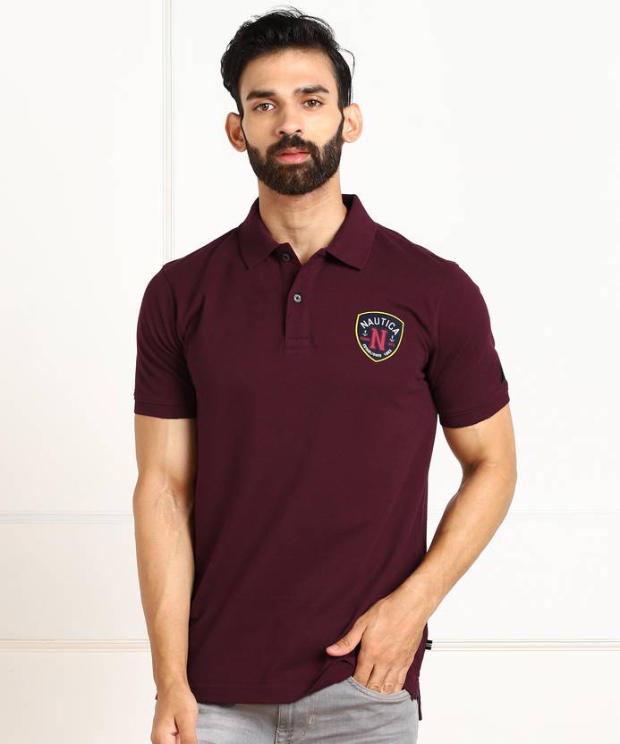 NAUTICA Solid Men Polo Neck Maroon T-Shirt