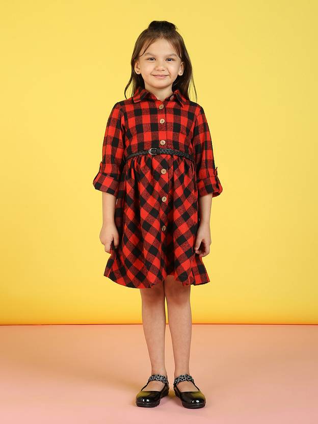 NautiNati Girls Midi/Knee Length Party Dress (Red, 3/4 Sleeve)
