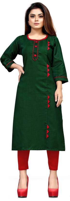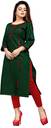 Women Solid Cotton Blend Straight Kurta (Dark Green)
