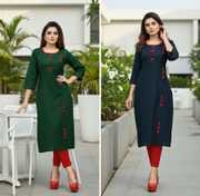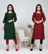 AAI MOGAL Women Solid Straight Kurta (Dark Green)