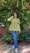 Upgrade your wardrobe with this stylish Ikat Print Rayon Flair Middy Gown in a refreshing green shade. Designed for comfort and elegance, this 47-inch gown is made from premium Rayon fabric, ensuring breathability and ease of movement. The beautiful floral Procin print adds a touch of sophistication, making it perfect for casual outings, brunch dates, or festive gatherings.