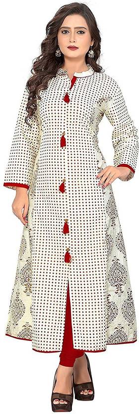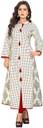Women Printed Cotton Blend Frontslit Kurta (White)
