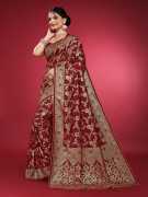 Perfect for special occasions, this saree has rich designs and soft zari work.
