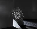 The watch features easy-to-use controls on the side, including a crown that can be pulled out in two levels to control the calendar and time functions. Additionally, two buttons positioned above and below the crown allow for convenient control of the chronograph feature. The top button stops and starts the chronograph, while the bottom button resets it, providing intuitive operation for timing activities or events.
