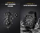 The watch is designed with a grooved anti-skid crown, offering enhanced grip and control when adjusting the time or other functions. The grooved texture of the crown surface prevents slippage, allowing users to easily grip and rotate the crown for precise time adjustments. Additionally, the anti-skid design minimises the risk of accidental misalignment or damage to the crown mechanism, ensuring long-term durability and reliability.