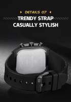 The watch is equipped with a soft silicone strap secured by a tang buckle, offering comfort and convenience for daily wear. Silicone straps are known for their flexibility, durability, and hypoallergenic properties, making them an excellent choice for individuals with sensitive skin. Additionally, the tang buckle provides a secure closure, keeping the watch securely in place while allowing for easy adjustment to achieve the ideal fit.