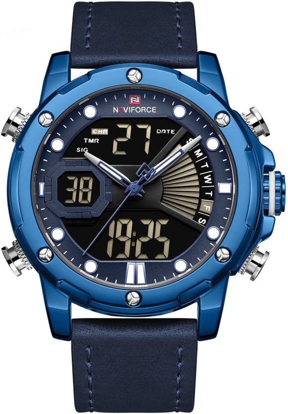 NAVIFORCE Genuine Blue Leather Japanese Quartz Waterproof Analog-Digital Watch - For Men 9172