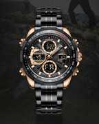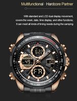 The watch is your multifunctional partner—it's more than simply a timepiece. Your watch is more versatile with the conventional and LCD Dual display movement. It has features like showing the day, time, and week. The watch's multifunctionality allows it to be used in a variety of situations, from daily activities to outdoor excursions.